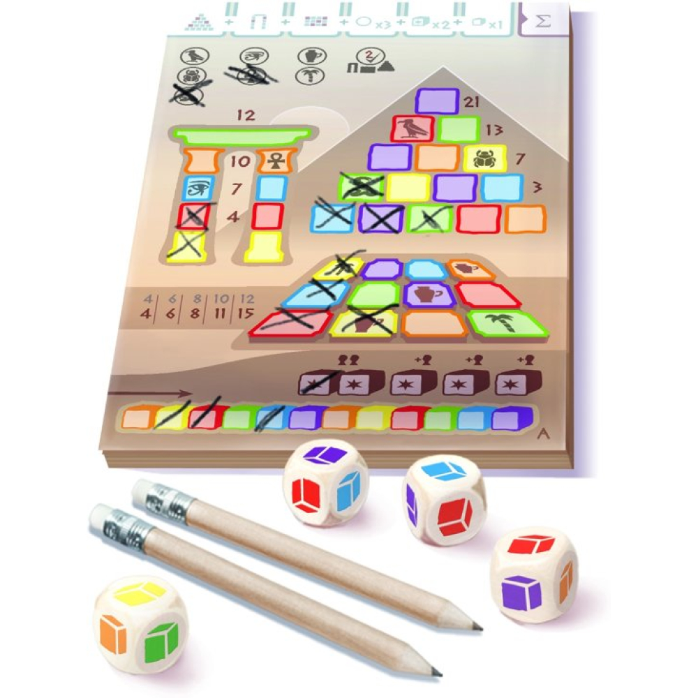 Heb je altijd al gedroomd om een grote pyramide te bouwen? Dan is ANUBIXX precies het spel voor jou.Bouw kolossale gebouwen zonder op je beurt te moeten wachten, want één speler gooit met de dobbelstenen en iedereen bouwt mee! Is het resultaat van de dobbelstenen niet zoals je graag wilt, dan kan de steengroeve je redden.
