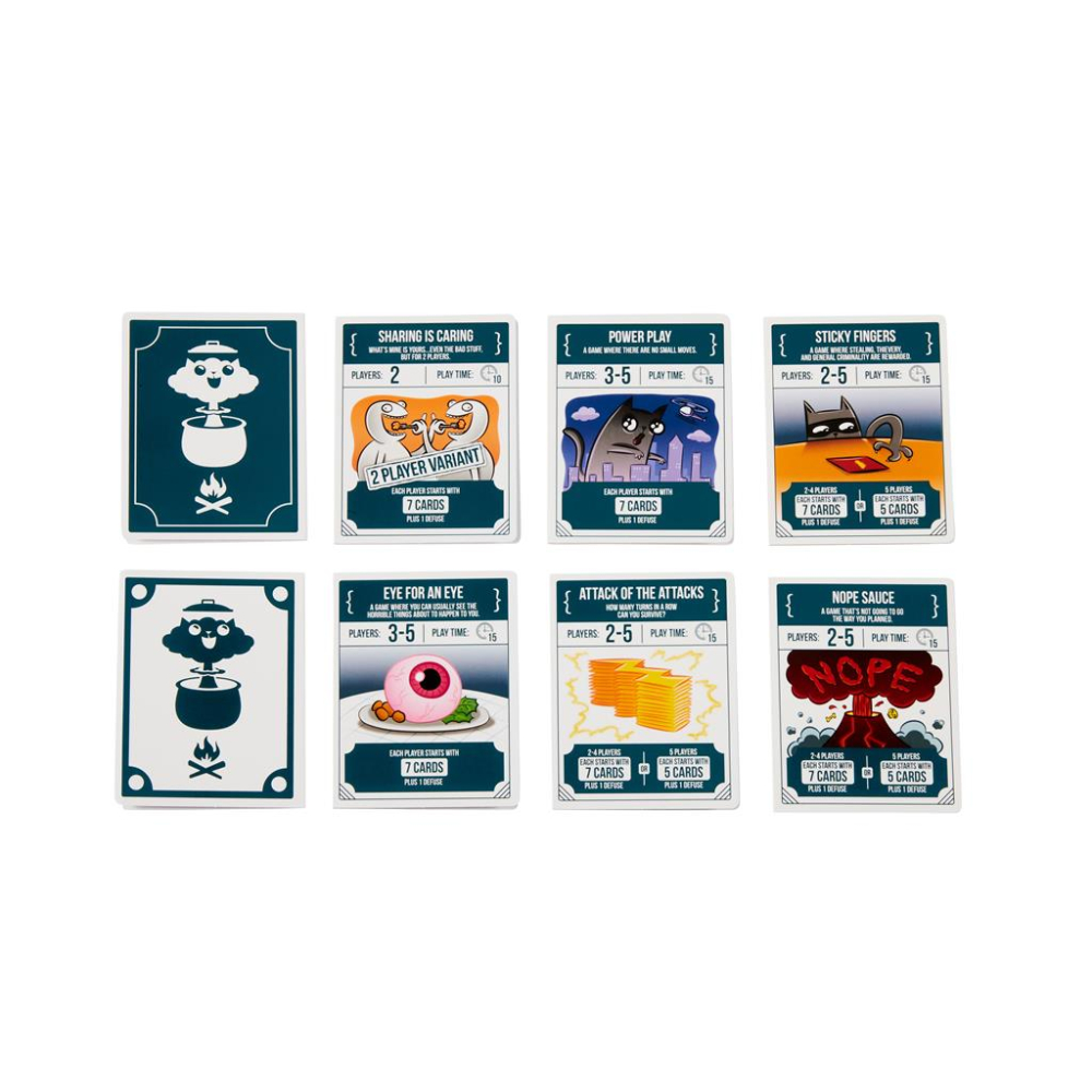 Inhoud: 121 kaarten (de meest populaire Exploding Kittens kaarten), 13 spelrecepten met eigen spelregels, 1 cone of shame (schaamkraag).