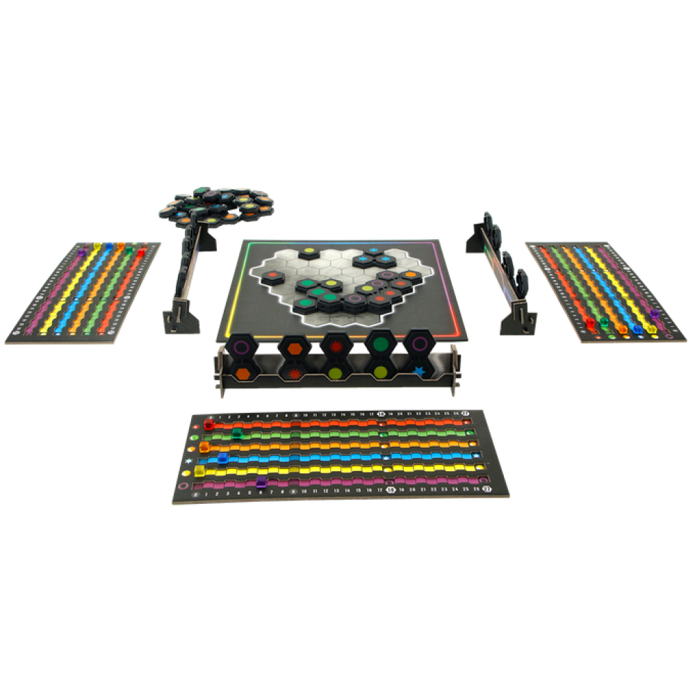 In dit abstracte legspel ontstaan bij elk nieuw speelstuk op het bord nieuwe mogelijkheden en dat in 3 dimensies. Overweeg goed waar je je speelstukken legt en hou altijd alle kleuren in de gaten. Want aan het einde bepaalt uitsluitend de kleur met de laagste score wie er met de winst vandoor gaat.