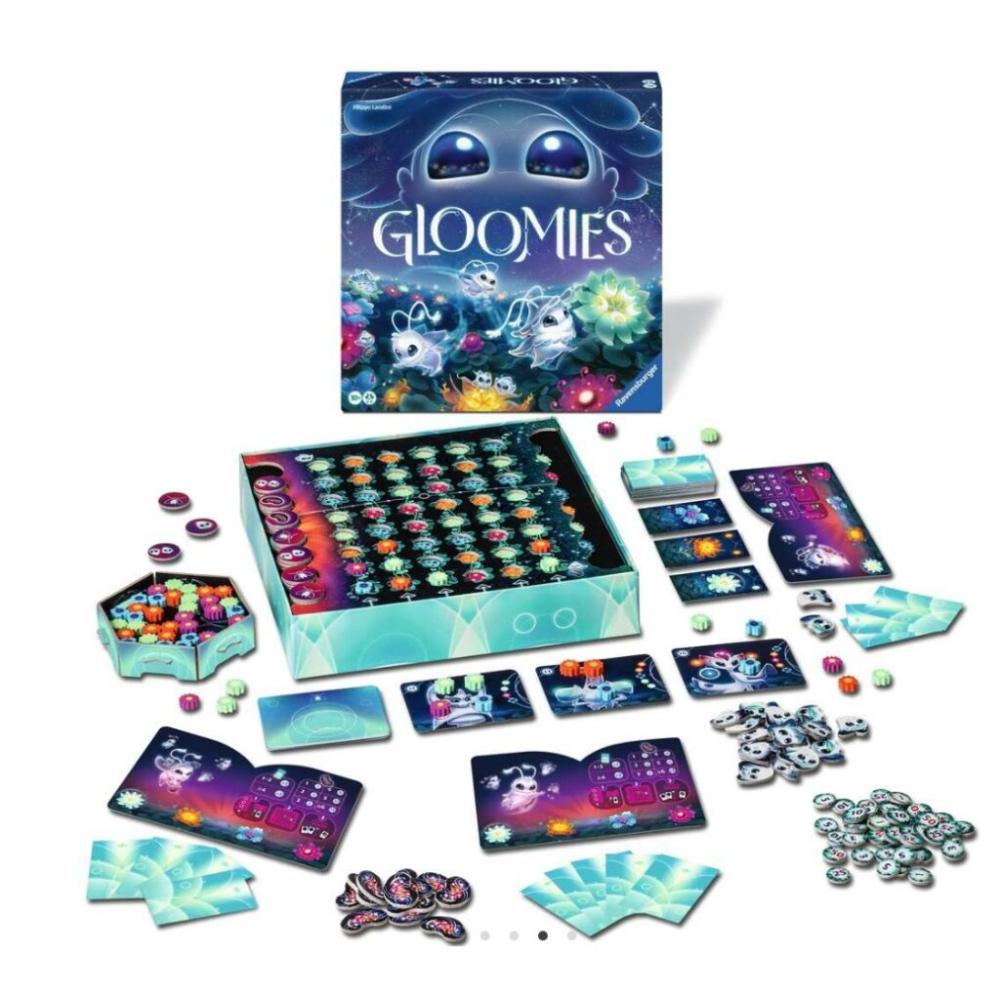 Maak kennis met de Gloomies, kleine wezentjes uit de ruimte die zich graag versieren met prachtige galactische bloemen. In Gloomies is het jouw taak om deze stralende bloemen te kweken in de eerste helft van het spel, en ze vervolgens te oogsten in de tweede helft. Tijdens het eerste deel speel je kaarten om strategisch bloemen in rijen op het bord te plaatsen en jezelf zo voor te bereiden op mooie bonussen. Nadat je nieuwe kaarten hebt getrokken, worden je aflegkaarten je stapel voor de tweede helft van het spel. Vervolgens speel je kaarten om strategisch bloemen te oogsten uit de rijen, opnieuw met het oog op aantrekkelijke bonussen. Aan het einde van het spel ontvang je punten voor de geoogste bloemen en de Gloomie-decoratieopdrachten die je hebt voltooid. Gloomies is een toegankelijk spel voor groepen spelers van alle ervaringsniveaus. Kweek, oogst en geniet van de kleurrijke wereld van de Gloomies!.