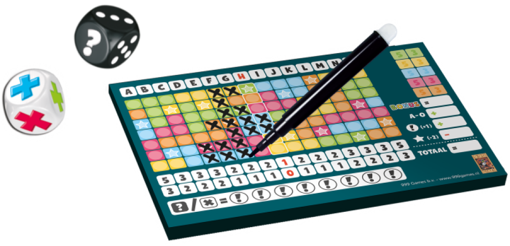 Maak steeds de juiste keuze en probeer de door de andere spelers gewenste combinatie weg te nemen. Je keuzemogelijkheden stijgen als je je speelveld verstandig uitbreidt. Naast punten voor complete kolommen krijg je ook een bonus als je alle vakjes van 1 kleur hebt aangekruist. Het spel is afgelopen als een speler 2 complete kleuren heeft aangekruist. Wie heeft de meeste punten?