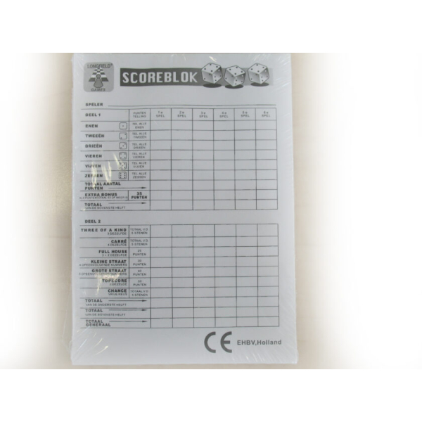 Scoreblok ten behoeve van het spel yahtzee.100 vellen.