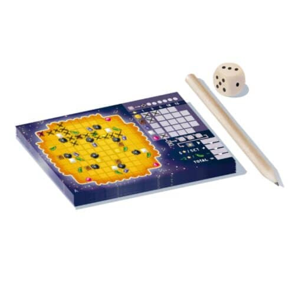 Wie beweert dat de maan van kaas is gemaakt, heeft het bij het verkeerde eind – de maan zit vol met lekkernijen! Je graaft tunnels in de maan in de hoop al die lekkernijen te kunnen bemachtigen. De dobbelsteen is je boor. Hoe hoger de worp, hoe dieper je mag graven. Maar je krijgt de lekkernijen alleen door heel nauwkeurig te graven.