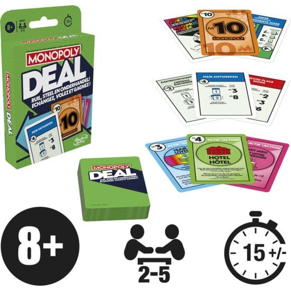 Het Monopoly Deal Kaartspel is alle Monopoly-pret in een snel te spelen kaartspel.