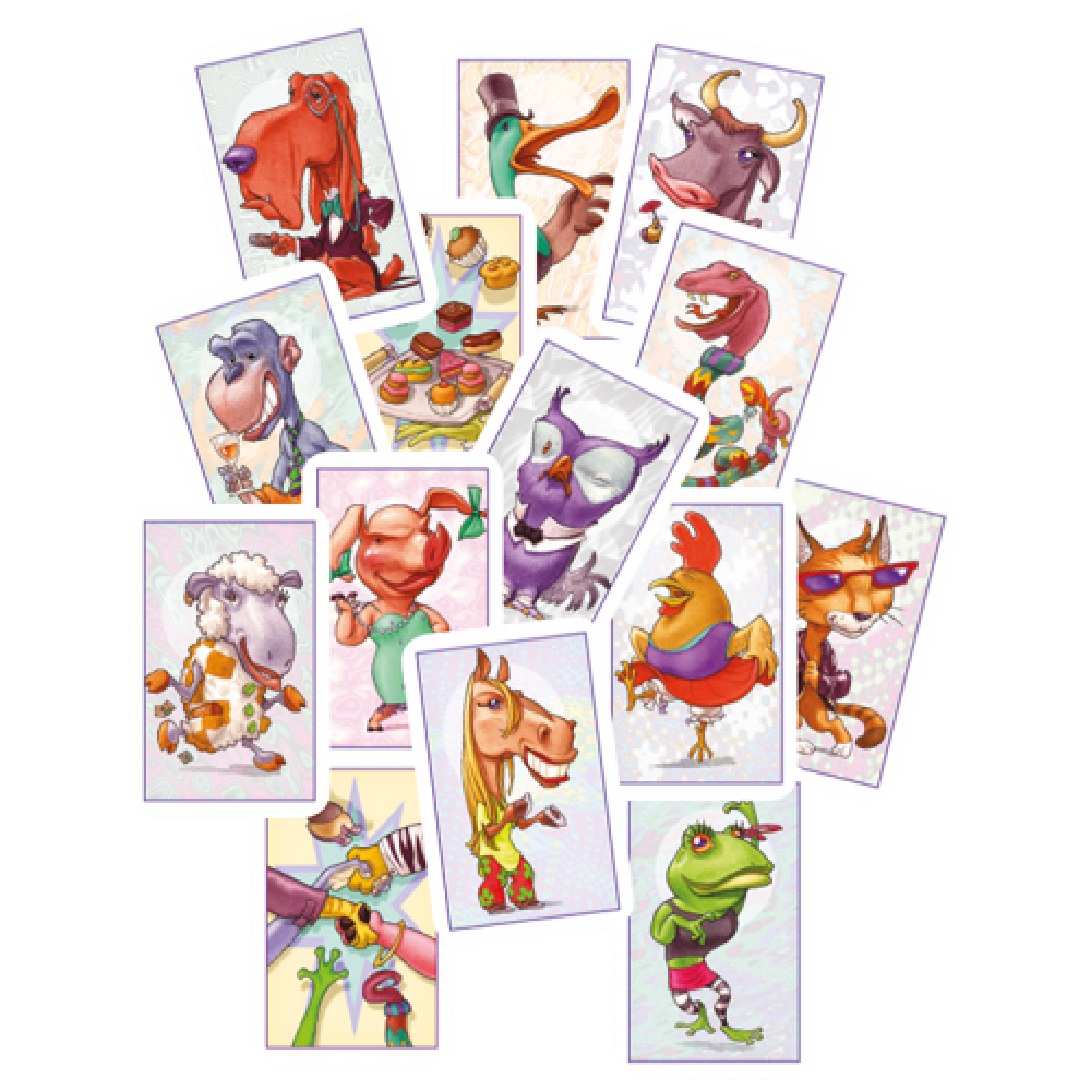 De dieren organiseren een feest en spelen een kaartspelletje. Ieder dier communiceert op zijn eigen wijze. Om beurten draait het dierengezelschap een kaart om. Bij twee gelijke kaarten imiteren de dieren zo snel mogelijk elkaars dierengeluid tot hilariteit van de anderen. Plotseling knorren de konijnen en grommen de eenden. De leeuw mauwt, terwijl de slang hinnikt. Welk dier is het meest veelzijdig in Party Animals? In Party Animals moeten de spelers niet alleen onthouden welke dieren de andere spelers voorstellen, ze moeten ook de bijbehorende geluiden kunnen reproduceren. Een hilarisch spel, waarin een goed geheugen prima van pas komt.