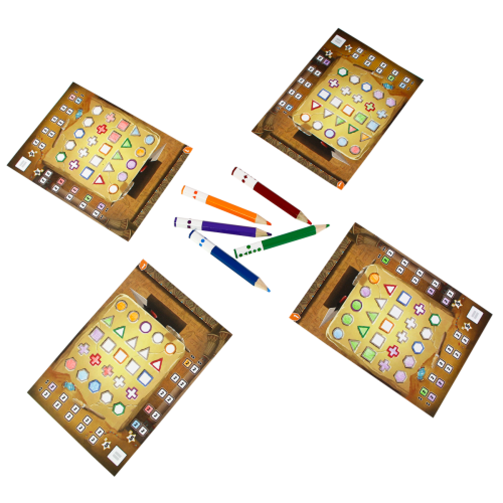 Kies steeds 1 van de gerolde kleurpotloden en kleur het op de betreffende zijde aangegeven symbool in.