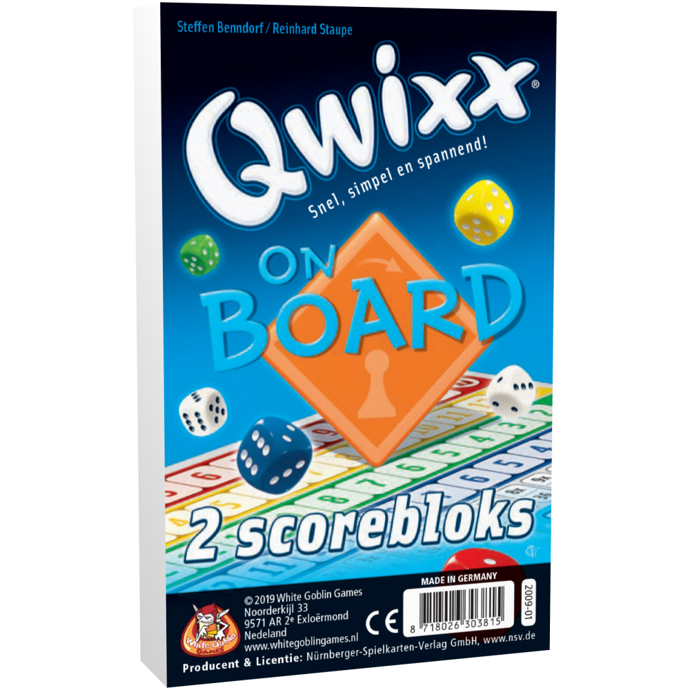 2 extra scorebloks met 80 blaadjes per stuk (160 in totaal) voor het populaire dobbelspel QWIXX ON BOARD.