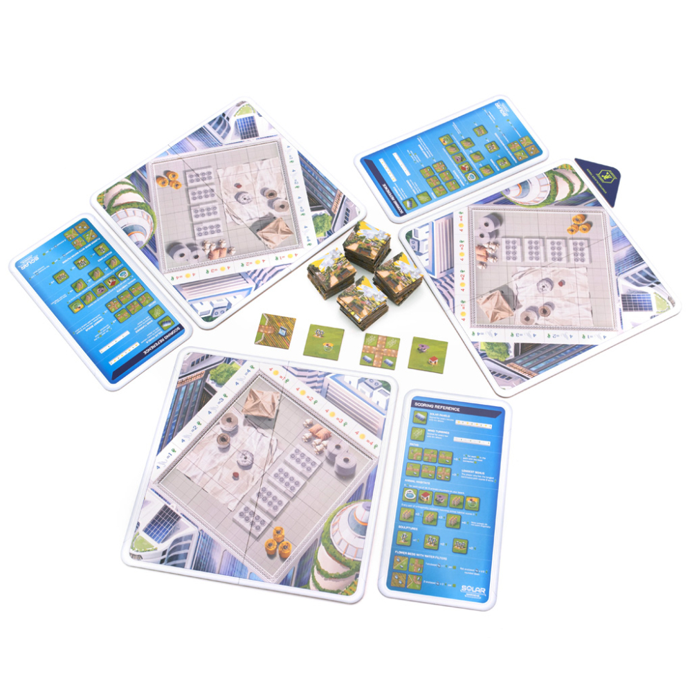 - STRATEGIC TILE-DRAFTING FUN: Compete as visionary architects to create the most beautiful and sustainable rooftop garden using solar farms, windmills, water filters, and cultural hubs.