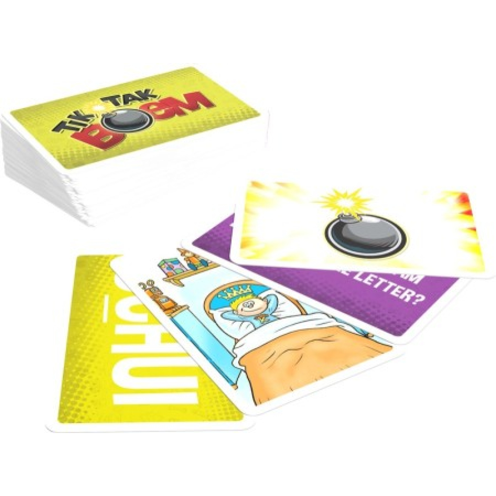 Het bekende Tik Tak Boem nu als kaartspel. Neem een kaart van de stapel. Voer de opdracht uit en maak snel woorden met de lettergroepen die je krijgt.