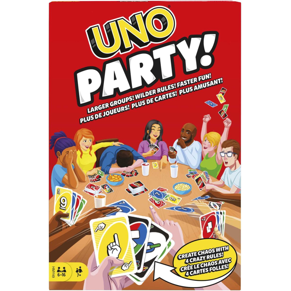 Roep iedereen bij elkaar voor een spelletje UNO Party, het geliefde klassieke kaartspel dat spelers kennen, maar dan met extra kaarten en speciale regels die specifiek zijn bedoeld voor grotere groepen en die zorgen voor eindeloos speelplezier! In deze versie blijf je doorspelen totdat iemand niet kan, wijzen spelers naar andere spelers die kaarten moeten trekken en worden twee spelers aan elkaar gekoppeld die tegelijkertijd kaarten moeten trekken. Er is zelfs een nieuwe regel voor Snel spelen.